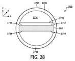 [0105]  先端部材2700は、開放近端2728から閉鎖丸形遠端2720に向かって延びる内部空洞2730を含む。該内部空洞2730は、撮像コア562を収容するように構成される。内部空洞2730は、近端部2704における近端側湾曲上部内壁2726及び遠端部2702における遠端側平坦上部内壁2722を含む。内部空洞2730は、近端側湾曲上部内壁2726及び遠端側平坦上部内壁2722に結合された湾曲底部内壁2738を含む。内部空洞2730は、該内部空洞2730の側壁部分に沿って開放近端2728から閉塞丸形遠端2720に向かって延びる1対のレール2732及び2734を形成するようにモールド成形される。レール2732及び2734は、周方向に互いに離隔されて、撮像コア562を配置するための空間を形成する。内部空洞2730は、該内部空洞2730の半径方向反対側の側壁部分に沿って長手方向に延びる、前記レール2732及び2734と同様の他の対のレール2752及び2754(図28に示される)を更に含む。このように、レール2732、2734、2752及び2754は、撮像コア562の配置を限定するための案内部材として働く。例えば、撮像コア562は、超音波トランスジューサ素子2510が超音波を点線矢印により示されるように遠端側平坦上部内壁2722及び遠端部2702における湾曲外壁2724に向かって且つ斯かる壁を介して放出するように配置される。先端部材2700の寸法は、前記先端部材1700と実質的に同様とすることができるが、遠端部2702における壁厚2720は200ミクロンより大きい。例えば、該壁厚2720は、当該先端部材2700の外径2712の約25%~約50%の間とすることができる。  [0105]