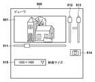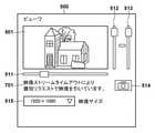 次に図5を参照して本実施形態のGUI画面(ビューワ画面500)について説明する。ビューワ画面500において、映像表示領域501にカメラ102から配信された映像が表示される。操作バー511,512,513によりパン、チルト、ズームの操作が可能である。スナップショットボタン514は、静止画を取るときに利用される。画像サイズ設定セレクタ515は、現在の映像サイズを表示するとともに、表示する映像サイズを切り換えるのに用いられる。映像表示領域501には、図1(a)で説明したストリーム配信により得られた画像、および、図1(b)で説明した個別配信により得られた画像を表示する事が可能となっている。  Next, the GUI screen (viewer screen 500) of the present embodiment will be described with reference to FIG. On the