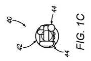 図面を参照すると、図1A乃至1Cは、例えば図6に示すように、乳房90内などの、患者の体内に埋め込むことができる反射マーカ又はタグ40の例示的な実施形態を示す。一般に、マーカ40は、一又はそれ以上のワイヤ又はその他のアンテナ44に接続された電子機器パッケージ42を具える。マーカ40は、例えば、管腔切開手順などの手順を実行するシステム1010内に設けられており、例えば、一又はそれ以上のマーカを組織内に送達する送達装置(図示せず、例えば、図8を参照)と、図6乃至8に示されており、以下に更に説明する組織内に埋め込まれたマーカ及び/又はその他の部品の位置を特定するプローブ1020を具える。  Referring to the drawings, FIGS. 1A-1C show exemplary embodiments of reflex markers or