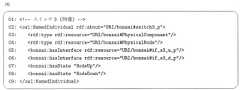 図8にスイッチ3の物理ネットワーク構成におけるインスタンス表現を示す。このインスタンスの名称はswitch3_pである。図9にスイッチ3の上流インタフェースの物理ネットワーク構成におけるインスタンス表現を示す。このインスタンスの名称はif_s3_u_pである。図10にルータ3とスイッチ3間のリンクの物理ネットワークにおけるインスタンス表現を示す。このインスタンスの名称はlink_r3s3_pである。図11にスイッチ3とホスト2間のリンクの物理ネットワークにおけるインスタンス表現を示す。このインスタンスの名称はlink_s3h2_pである。図12にルータ3とスイッチ3間のリンクの論理ネットワークにおけるインスタンス表現を示す。このインスタンスの名称はlink_r3s3_lである。図13にIPサブネット3のIPネットワーク構成におけるインスタンス表現を示す。このインスタンスの名称はsubnet3_iである。図14にホスト2とwebサーバ1間のIP経路のIPネットワーク構成におけるインスタンス表現を示す。このインスタンスの名称はpath_h2w1_iである。図15にホスト3のIPネットワーク構成におけるインスタンス表現を示す。このインスタンスの名称はhost3_iである。図16にホスト3のサービスネットワーク構成におけるインスタンス表現を示す。このインスタンスの名称はhost3_sである。図17にwebサーバ1のサービスネットワーク構成におけるインスタンス表現を示す。このインスタンスの名称はweb1_sである。 FIG. 8 shows an instance representation in the physical network configuration of the