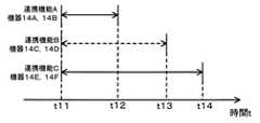 また、各連携機能に実行期間が設定されている。連携機能Aの実行期間は、時点t11~t12である。連携機能Bの実行期間は、時点t11~t13である。連携機能Cの実行期間は、時点t11~t14である。  In addition, an execution period is set for each linkage function. The execution period of the cooperation function A is time points t11 to t12. The execution period of the cooperation function B is time points t11 to t13. The execution period of the cooperation function C is time points t11 to t14.