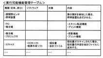 機能管理情報22は、例えば、機能に用いられる構成(各構成を識別するための構成識別情報)と、当該機能に関する機能情報との対応付けを示す情報である。例えば、単独機能に用いられる単独の構成と、当該単独機能に関する機能情報とが対応付けられて、機能管理情報に登録されている。また、連携機能に用いられる複数の構成の組み合わせ(各構成を識別するための構成識別情報の組み合わせ)と、当該連携機能に関する機能情報とが互いに対応付けられて、機能管理情報に登録されている。  Thefunction management information 22 is, for example, information indicating the correspondence between the configuration used for the function (configuration identification information for identifying each configuration) and the function information related to the function. For example, a single configuration used for a single function and functional information related to the single function are associated and registered in the function management information. In addition, the combination of a plurality of configurations used for the linkage function (combination of configuration identification information for identifying each configuration) and the function information related to the linkage function are associated with each other and registered in the function management information. ..