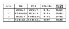 上記実施形態では、記憶部25に記憶される作業条件がレベル1からレベル4の4段階に区分され、夫々刈り込む高さと刈り刃54の回転速度とが規定されるとして説明したが、作業条件の区分けは3段階以下でも良いし、5段階以上で行っても良い。また、刈り込む高さと刈り刃54の回転速度とは、夫々、互いに異なるように規定することも当然に可能である。  In the above embodiment, the working conditions stored in the