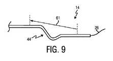 図3ないし9は、医療デバイス14を単にずらすこととは異なり、且つ、その長軸の周りに医療デバイス14を回転させることとも異なる特定の操作の実施形態を示す。図3ないし9は、医療デバイスに挿入された光ファイバ26とともに、操作セクション44の領域にある医療デバイス14を示す。  FIGS. 3-9 show embodiments of a particular operation that differ from simply shifting the