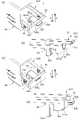 本実施形態の動作部21Bは、付勢手段としての圧縮バネ41と、規制部21Bf(図26(b)など)とを更に有する。圧縮バネ41は、図24(a)に示すように、一対のアーム部21Bcの両端側の下面とカバー部材19B(図24(a)では不図示)との間に2箇所ずつ、合計4個配置されている。そして、圧縮バネ41は、動作部21B全体を(鉛直方向上方、矢印X方向)に付勢する。即ち、圧縮バネ41は、動作部21Bの先端側に設けられた係合部21Bdを、受入れ口11aがシャッタ開口4j(図16(a)、(b))と連通する方向(鉛直方向上方)に付勢する。なお、圧縮バネ41は、図24(b)に示すようなコイルバネであるが、付勢手段は、その他、板バネなどの他の部材であっても良い。これら圧縮バネ41の付勢力の合計は、現像剤受入れ部11を鉛直方向下方に付勢する付勢部材12(図5)の付勢力よりも大きい。  The