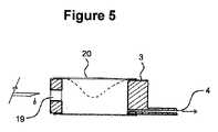 図5は、エアロゾル発生システムのための再充填可能なカートリッジを示す。カートリッジは、可撓性の管から作られた可撓性の壁20を有する剛直な容器で作られる液体貯蔵部分3を含む。容器は、管状のセグメント4によってマイクロポンプの入口に接続される出口を含む。液体のポンピングに伴って、可撓性の壁20がつぶれる。隔壁19は、カートリッジを再充填するための剛直な容器に提供される。  FIG. 5 shows a refillable cartridge for an aerosol generation system. The cartridge comprises a