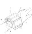 このように構成された手首装着型血圧計1では、手首装着型血圧計用カフ20を手首Mに巻き、面ファスナ23と面ファスナ24とを貼り付けることで、手首装着型血圧計1を被測定者の手首Mに装着する。手首装着型血圧計1を被測定者の手首Mに装着した状態で、操作部12を操作することで、装置本体10のポンプから、空気袋22の内部に、空気が導入される。空気袋22に空気が導入されると、手首Mの動脈が圧迫される。  In the wrist-mounted sphygmomanometer 1 configured in this way, the wrist-mounted sphygmomanometer 1 is covered by wrapping the wrist-mounted