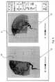 言い換えれば、いわゆる脳マスク、すなわち注目領域(ROI)が適用され、これは、計算および/または表示の目的で、注目の臓器または組織(たとえば、血管)への縮小が適用されることを事実上意味する。したがって、たとえば頭蓋骨はさらなる手順では使用されない。この手順は、段階的に行われてもよい。第1のステップにおいて、脳全体のみがROIとして選択され、第2のステップにおいて、脳の血管構造のみが第2のROIとして選択され、第3のステップにおいて、脳の血管構造全体のうちの一部のみが第3のROIとして選択されてもよい。図4に示される実施形態では、このようなROI選択は、ノブ44を有するソフトウェアで行うことができる。明らかに、これは、ここで説明する概念の一実施形態に過ぎない。したがって、元のデータセットからセグメント化された、提供された三次元画像データからの画像データのサブセット、すなわち一部のみが、提示されている方法におけるさらなる手順で使用される。なお、セグメント化ステップは、好ましくは三次元画像データ上で行われ、変換二次元画像データはそれほど好ましくない。本発明のこのセグメント化局面についても、図4の実施形態についての説明とともに図示して説明する。  In other words, a so-called brain mask, or region of interest (ROI), is applied, which effectively means that reductions to the organ or tissue of interest (eg, blood vessels) are applied for computational and / or display purposes. means. So, for example, the skull is not used in further procedures. This procedure may be done in stages. In the first step, only the entire brain is selected as the ROI, in the second step only the vascular structure of the brain is selected as the second ROI, and in the third step, one of the entire vascular structures of the brain. Only the portion may be selected as the third ROI. In the embodiment shown in FIG. 4, such ROI selection can be done by software with