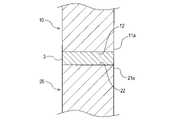接合部材3は、接着剤を含んでおり、接合部材3自体、接着性を有する。そのため、接合部材3における、第1対向面12と対向する面は、一定の接着力にて第1対向面12に接着される。また、接合部材3における、第2対向面22と対向する面も、一定の接着力にて第2対向面22に接着される。As the joining