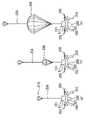 管部53には、一部が露出した状態で発射体53aが挿入されており、同様に、管部54には、一部が露出した状態で発射体54aが挿入され、管部55には、一部が露出した状態で発射体55aが挿入されている。パラシュートまたはパラグライダー56は、紐58により発射体53aに連結されていると共に紐59により発射体55aに連結されている。また、パラシュートまたはパラグライダー57は、紐60により発射体55aに連結されていると共に紐61により発射体54aに連結されている。  The projectile 53a is inserted into the