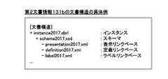 そして、図3に示す第2文書情報131bの文書構造は、インスタンスに対応するファイル(ファイル名が「instance2017.xbrl」であるファイル)が、スキーマに対応するファイル(ファイル名が「schema2017.xsd」であるファイル)から参照されるファイルであることを示している。 The document structure of the second document information 131b shown in FIG. 3 is such that the file corresponding to the instance (file whose file name is "instance2017.xbrl") corresponds to the schema (file name is "schema2017.xsd"). Indicates that the file is referenced from the file).
