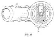 次に図2C~2Dを参照すれば、いくつかの実施形態では、ワッシャ34は、カテーテルアダプタ14の管腔30内の、セプタム12の近位端部の近位に配設され得る。いくつかの実施形態では、ワッシャ34は、カテーテルアダプタ14の管腔30内に、セプタム12の近位端部と接触して、またはセプタム12の近位端部から離間して配設され得る。いくつかの実施形態では、ワッシャ34は、たとえば高圧の流体の注入などの加圧に応答して発生し得る、近位方向へのセプタム12の強制に応答して、セプタム12の近位端部と接触し、および/またはこれに圧力をかけることができる。  Next, referring to FIGS. 2C-2D, in some embodiments, the