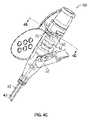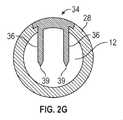 次に図2E~2Gを参照すれば、いくつかの実施形態では、ワッシャ34のアーム36の1つまたは複数は、セプタム12を貫通してセプタム12の固定を容易にすることができる先が尖った、または鋭利な要素39内で終端することができる。いくつかの実施形態では、鋭利な要素39は、図2Aに示すようなピン形状になり得る。いくつかの実施形態では、鋭利な要素39は、セプタム12を貫通してワッシャ34をセプタム12に固定するように構成され得る。いくつかの実施形態では、鋭利な要素39は、セプタム12の長さに沿ってさまざまな地点に配設され、高圧時に依然としてセプタム12を固定することができるため、鋭利な要素39は、セプタム12をそれほど正確に置かなくてもよい。いくつかの実施形態では、セプタム12は、弾性の可撓性材料から構築することができ、それによって鋭利な要素39によるセプタム12の貫通を容易にすることができる。たとえば、セプタム12は、シリコン、ポリイソプレン、ゴム、エラストマーポリマー、または別の材料から構築され得る。いくつかの実施形態では、カテーテルアダプタ14の壁28は、ワッシャ34のセプタム12内への挿入を可能にする1つまたは複数の開口41を含むことができる。いくつかの実施形態では、ワッシャ34の外側部分の湾曲は、壁34の外側表面の湾曲に合致することができ、それにより、カテーテルアダプタ14の外側表面にわたって円滑な移行が提供され得る。  Next, with reference to FIGS. 2E-2G, in some embodiments, one or more of the