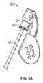 いくつかの実施形態では、任意の数のアーム64が、保持ディスク62と針組立体60のその部分との間を延びることができる。いくつかの実施形態では、第1のアーム64aおよび第2のアーム64b(本開示では、「アーム」と称され得る)は、針組立体60の両側に配設され得る。いくつかの実施形態では、針組立体60は、アーム64を通って延びる脆弱線68を備えて成形され得る。いくつかの実施形態では、脆弱線68は、アーム64の窪められたまたはより薄い部分を含むことができる。  In some embodiments, any number of