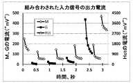 図2Aに示された第1入力信号について、パルスM1及びM2のパルス幅は0.2秒であり、パルスM3、M4、M5、M6のパルス幅は0.25秒である。第2入力信号については、パルスG1、G2、G3、及びG4のパルス幅は0.2秒である。第1入力信号の緩和幅は、それぞれパルスM1~M5の後、0.2秒、0.35秒、0.35秒、0.35秒、及び0.35秒である。第2入力信号の緩和幅は、それぞれパルスG1~G4の後、0.4秒、0.4秒、0.4秒、及び0.35秒である。ヘマトクリットパルスのパルス幅は0.2秒である。For the first input signal shown in FIG. 2A, the pulse widths of the pulses M1 and M2 are 0.2 seconds, and the pulse widths of the pulses M3 , M4 , M5 and M6 are 0.25 seconds. be. For thesecond input signal, the pulse widths of the pulses G1, G2,G3 , andG4 are 0.2 seconds. The relaxation width of the first input signal is 0.2 seconds, 0.35 seconds, 0.35 seconds, 0.35 seconds, and 0.35 seconds after the pulses M1 to M5 , respectively. The relaxation width of the second input signal is 0.4 seconds, 0.4 seconds,0.4 seconds, and 0.35 seconds after the pulses G1 to G4,respectively . The pulse width of the hematocrit pulse is 0.2 seconds.