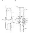 上記の実施形態では、筒状部の内周面は円筒面であったが、筒状部内に挿入されるオス部材911の外周面(オステーパ面)912に嵌合するようなメステーパ面(例えば、メスコネクタ920のメステーパ面922と同じメステーパ面)であってもよい。  In the above embodiment, the inner peripheral surface of the tubular portion is a cylindrical surface, but a female tapered surface (for example, a female tapered surface) that fits into the outer peripheral surface (male tapered surface) 912 of the