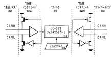 例えば、あるアーキテクチャは、複数の物理バスセグメント上のトラフィックを透過的に中継して、連続するCANバスに相当するシステムレベルでの挙動を行うCANリピータを含むことができる。また、あるデバイスは、CANコントローラからデジタル信号を受信して、CANの物理信号へマッピングする物理インタフェースを含んでもよい。 For example, one architecture may include a CAN repeater that transparently relays traffic on multiple physical bus segments and behaves at the system level, which corresponds to a continuous CAN bus. Also, some devices may include a physical interface that receives a digital signal from the CAN controller and maps it to the physical signal of the CAN.