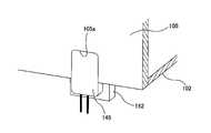 図5は、処理槽101の正面壁105が底部102に固定されている状態を示す斜視図である。上述した図4は、処理槽101の正面壁105が取り外された状態を示している。図5に示すように、正面壁105には光学式液面検出センサ145の外形に沿った形状の切り欠き105aが形成されている。光学式液面検出センサ145がこの切り欠き105a内に位置した状態で、正面壁105は底部102に固定される。正面壁105は、支持部材152の外面および底部102に隙間なく接触しており、処理槽101内の液体が切り欠き105aを通って外部に漏れないようになっている。  FIG. 5 is a perspective view showing a state in which the