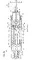 そして、送りねじ108の回転に伴い、ダブルねじ状態で第1プランジャ110と第2プランジャ112が前進する。その際、ナット部材54の先端面が先端台座部89から離間している場合、ナット部材54が第2プランジャ112を前進させるのではなく、第1係合部128と第2係合部150との係合により、第1プランジャ110が第2プランジャ112を前進させる。  Then, as the