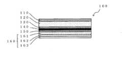 図2は本発明の第1実施形態に係る包装材料100の層構成を示す概略断面図である。包装材料100は、順に少なくとも熱可塑性樹脂層110、紙基材層120、接着樹脂層130、バリア層140、環状オレフィン共重合体からなる樹脂を含む熱融着性樹脂層160を備えた構成である。また、バリア層140と熱融着性樹脂層160は接着層150を介して積層されている。接着層150は必要に応じて設けられるものである。  FIG. 2 is a schematic cross-sectional view showing the layer structure of the