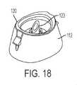 図17を参照すれば、ハウジング112は、中心線CLを画定し、第1の端部120と、第2の端部122と、中空針123と、流れチャネル124とを含む。流れチャネル24は、入口126および出口128を含む。流れチャネル124の一部分、たとえば底部分130は、ハウジング112の中心線CLからずらされる。これにより、流れチャネル124の出口128が容器14の内壁面72に隣接することが確実にされ、これは以下でより詳細に説明される。流れチャネル124はまた、出口128に流れ方向付け付着部分134を含む。1つの実施形態では、流れチャネル124の出口128は、図17に示すようにハウジング112の第2の端部122を超えて延びている。1つの実施形態では、中空針123は、ハウジング112の第1の端部120と流れチャネル124との間にある。  Referring to FIG. 17,