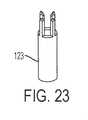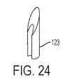 中空針123は、図18~24に示すような多様な異なる設計および構造体を含むことができる。中空針123の追加の代替的な設計および構造体が、企図される。たとえば、図18および19を参照すれば、1つの実施形態では、中空針123は、ベベル切断された中空針を含む。1つの構成では、針のベベルは、3mmから6mmの間の長さであってよく、管腔内径は、0.25mmから4mmの間であってよい。  The