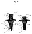図4は本発明の第二の実施形態を示し、これにおいてプロング10の第一の位置と第二の位置は、シャフト26に関して逆になっている。この実施形態において、プロング10は、シャフト26が第一の位置にある時に、収縮された位置にある。この配設は図4の左部分に図示されている。図4の右部分において、シャフト26は第二の位置にあり、これは拡張された位置に置かれているプロング10をもたらす。言い換えれば、プロング10は、作動要素22が作動していない時に、収縮された位置にある。プロング10は、作動要素22が作動している時に、拡張された位置にある。  FIG. 4 shows a second embodiment of the present invention in which the first and second positions of the