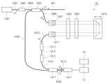 より詳細に説明すると、図16(特許文献1の図1を引用した図面)に示されるように、眼科用顕微鏡は、左眼用観察光学系の光軸と右眼用観察光学系の光軸をそれぞれ透過させる左右に対となるレンズ群130,140,150,170,180からなる観察光学系と、左眼用観察光学系の光軸と右眼用観察光学系の光軸が共通して透過する一つの対物レンズ110と、OCT光学系200,250,450,460,470と、照明光学系310,320,330を有している。OCT光学系においては、OCT光源200からの出力光が、光ファイバ250を通過して出射され、2枚の走査鏡450,460により方向を制御された後、ビームコンバイナ340において照明光学系からの照明光と合流して、ビームスプリッタ120で反射され、被検眼1000に入射している。  More specifically, as shown in FIG. 16 (drawing with reference to FIG. 1 of Patent Document 1), the ophthalmic microscope has an optical axis of the observation optical system for the left eye and an optical axis of the observation optical system for the right eye. The optical axis of the observation optical system consisting of 130, 140, 150, 170, and 180 paired lenses on the left and right, and the optical axis of the observation optical system for the left eye and the optical axis of the observation optical system for the right eye are common. It has one transmissive