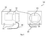 先ず、図1は、基準カメラ10の側面図と正面図を示している。これは、ある実施例では、正方形のハウジング11に填め込まれている。基準カメラハウジング内の基準カメラ10は、光学系12、電子系を有するイメージャ13、接続部14から構成され、第二インターフェースタイプのメカニカルインターフェース15を、基準カメラ10を構成内において固定するために、有している。このため、インターフェース15は、ポジショニング台による取付に合うように設計されている。この種の(第二)ポジショニング台は、図5に示されているポジション55と56に使用される。代案的に、インターフェース15は、基準カメラアダプタ40に取付けられることもできる該ハウジングは、非常に精密に触覚的に計測され、インターフェース15に対する角のポーズが割出される。  First, FIG. 1 shows a side view and a front view of the