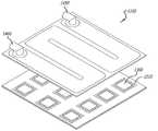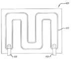 チャネルエンクロージャアセンブリは、3つの可撓性シートから構成することができる。第1のシートおよび第2のシートは整列した穴を有し、上述したプレート片をシートの中および間に埋め込んで、穴を覆うことができる。第1のシートおよび第2のシートは、第2のシートとともにそれらの間に蛇行チャネルを形成するために第2のシートに熱圧縮、またはRF溶接、または超音波溶接された第3の(上部)シート(強化TPUシートなど)に固定されている。プレート片の上面は、第2のシートのチャネル部分の穴にあり、それによって、チャネルの壁の一部分が形成され、チャネル内を流れる液体と直接接触して、それらの間で熱伝達が行われる。 The channel enclosure assembly can consist of three flexible sheets. The first sheet and the second sheet have aligned holes, and the above-mentioned plate pieces can be embedded in and between the sheets to cover the holes. The first sheet and the second sheet are heat-compressed, RF-welded, or ultrasonically welded to the second sheet to form a meandering channel between them together with the second sheet. ) It is fixed to a sheet (reinforced TPU sheet, etc.). The top surface of the plate piece is in the hole in the channel portion of the second sheet, which forms a portion of the wall of the channel, in direct contact with the liquid flowing in the channel and heat transfer between them. ..