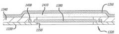 コア複合材層800には、穴810が切られている。上側Mylarシート830もまた、TECのために穴840が切られている。上部プレートは850で示され、生体適合性層は860で示されている。  A
