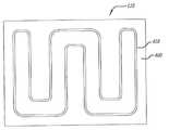 RF溶接の設計は、異なる各HEMの仕様に応じる。典型的なHEMの典型的な溶接設計とは別に、別の可能な設計が示される。各TPUシートは、15~40ミルの厚さであり(未定)、RF溶接ラインは、例えば、3ミルである。TPUの入口/出口(典型的には屈曲部の形態)もまた、設計された水チャネルの端部でRF溶接されて、水の入口および出口が循環されることを可能にする。これらの入口/出口は、サイズが異なり、各HEMの仕様に応じて、内径(ID)が1/4インチまたは3/8インチのいずれかである。ともに溶接された2つのTPUシートおよび屈曲部のシステムは、ここでは「水チャネル」と呼ばれる。RF Welding The design of RF welding depends on the specifications of each different HEM. Apart from the typical welded design of a typical HEM, another possible design is shown. Each TPU sheet is 15-40 mils thick (undecided) and the RF welding line is, for example, 3 mils. The TPU inlet / outlet (typically in the form of a bend) is also RF welded at the end of the designed water channel, allowing the water inlet and outlet to circulate. These inlets / outlets vary in size and have an inner diameter (ID) of either 1/4 inch or 3/8 inch, depending on the specifications of each HEM. The system of two TPU sheets and bends welded together is referred to herein as a "water channel".