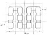 モジュールの残りの部分は、概して500で示される熱交換スタック(HES)を形成する。スタックは、概して530で示される熱伝導性プレート構造または層を集合的に形成する底部プレート520を含む。例示のために、図12Aは、プレートが透明であるものとして示されているため、プレート上の裏面接着剤がチャネルアセンブリ内に見えている。プレートまたはプレート片540があるが窓はない代替的なプレート構造が図12Bに示されている。4つのプレートの代わりに12個のプレートを有し、それによりY方向に3つ、X方向に2つの、より多くの回転可撓性軸を提供する代替の実施形態の図である。さらなる代替例が図15Bに示されており、プレート片550がウェブ560とともに接続されている。