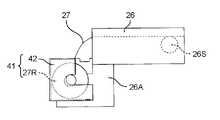 部品供給ユニット26に対するケース入りロール体41の使用形態としては、例えば、図2の左側に示すケース入りロール体41のように、フィーダ台車25に取り付ける形態のほか、図2の右側および図8Aに示すケース入りロール体41のように、アタッチメント26Aを介して部品供給ユニット26に取り付ける形態がある。或いは、図8Bに示すように、ケース入りロール体41の全体を部品供給ユニット26の内部に収納する形態もある。また或いは、図8Cに示すように、ケース入りロール体41からロール体27Rを取り出し、ロール体27Rのみを部品供給ユニット26の内部に収納する形態もある。  Examples of usage of the cased