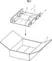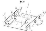 なお、上記説明では、図4Bにおいて、第2折目線bに沿って折り曲げた板状部材を折り曲げられていない元の状態に戻してから、起立部22,22を第1折目線a,aで載置部21の表面側に折り曲げると説明した。しかしながら、該第2折目線bと該第1折目線aとは交差しているため、両折目線を同時に折り曲げることはできないので、第1折目線aで強制的に折り曲げると、先に折り曲げられていた第2折目線bは、折り曲げられていない元の状態に自動的に復元される。  In the above description, in FIG. 4B, the plate-like member folded along the second folding line b is returned to its original unfolded state, and then the standing