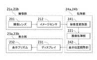 表示部23aは、処理部22aにより処理された映像を表示する。表示部23bは、処理部22bにより処理された映像を表示する。表示部23a及び23bの各々は、ディスプレイ231と、表示プリズム232とを有する。  The