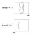 図19は水晶体を撮影するための第2の前眼部撮影モードで得られたOCTデータの一例を示す図である。例えば、制御部70は、第2の前眼部撮影モードにおいて、第1の検出器120aに基づく第1のOCTデータと第2の検出器120bに基づく第2のOCTデータの一方が水晶体前面を含むOCTデータとして取得され、第1の検出器120aに基づく第1のOCTデータと第2の検出器120bに基づく第2のOCTデータの他方が水晶体後面を含むOCTデータとして取得されるように、第1の参照光路110aと第2の参照光路110bとの光路長差を調整してもよい。この場合、ゼロディレイ位置が、角膜と水晶体前面との間に配置されるように光路長差が設定されてもよい。  FIG. 19 is a diagram showing an example of OCT data obtained in the second anterior segment imaging mode for imaging the crystalline lens. For example, in the second anterior segment imaging mode, the