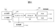 なお、図1との対応では、データベース105はROM117及びRAM118として実装され、探索装置における各ブロックはROM117に格納されるプログラム(探索プログラム)として実装される。  1, the