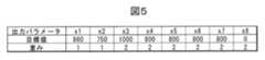 図5は、入力装置103に入力される目標出力パラメータ値の例であり、図4に示した8個の出力パラメータに対する目標値(寸法)が与えられている。この目標出力パラメータ値の示す目標形状は、幅800[nm]、深さ1000[nm]の垂直トレンチ構造の断面形状に相当する。また、各出力パラメータには、収束性の計算の際に使用される重みも与えられる。この例では、マスク層に対する加工後の断面形状を記述する出力パラメータ値(x1~x2)の精度に比べて、エッチング対象に対する加工後の断面形状を記述する出力パラメータ値(x3~x8)の精度を重視するように指定している。  FIG. 5 is an example of target output parameter values input to the
