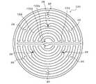 上述した実施形態では、内周側ゾーンZ1は1つのゾーンとして説明したが、複数の小ゾーンに分割されていてもよい。その場合、抵抗発熱体は小ゾーンごとに独立して配線される。小ゾーンは、セラミックプレート20と同心円の境界線で内周側ゾーンZ1を分割することにより環状と円形状に形成してもよいし、セラミックプレート20の中心から放射状に延びる線分で内周側ゾーンZ1を分割することにより扇形(円錐の側面を展開した形状)に形成してもよい。  In the embodiment described above, the inner peripheral zone Z1 was explained as one zone, but it may be divided into a plurality of small zones. In that case, the resistance heating elements are wired independently for each small zone. The small zones may be formed in annular and circular shapes by dividing the inner peripheral zone Z1 at a boundary line that is concentric with the