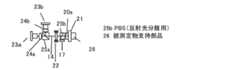FIG. 4 shows the basic optical configuration. As a feature, a near-infrared light source (semiconductor Laser Diode is used in this configuration) is used with multiple different wavelengths, and the multiple light sources are coaxially emitted. As wavelengths, a light source near 1500 nm (measurement light:23b ) and a light source at 1300 nm (reference light:23a ) are used, which exhibit a large absorption of glucose. The reason for selecting a wavelength around 1300 nm is that it exhibits a high absorbance for moisture, but does not exhibit a large absorbance for glucose. The amount detected by the measurement light is corrected as the amount of change in the moisture content and the amount of physical change. In addition, the amount of light detected by the reference light is used as a control amount to correct the vibration of the measurement site and the state of light incidence, and to avoid obstacles on the optical path. , to control the Actuator, which will be described later. FIG. 4 shows the configuration when using transmitted light for the measurement site, and FIG. 5 shows the configuration for detecting diffusely reflected light. Light from the light sources (23a, 23b) is narrowed down to a small diameter beam by Lenses (24a, 24b) and becomes Collimation light (14). The reason for narrowing it down to a beam with a small diameter is that it is possible to ensure brightness without using a light source with a large output, and it is possible to suppress power consumption and cost. Also, if there is an obstacle (specifically, a blood vessel (13)) on the optical path, it can be avoided. Two light sources are not allowed to emit light at the same time.After that, Actuator Lens (22) has the function of correcting the position of irradiation on the measurement site (21).The operation of this Actuator is Shift (16) and Tilt (15). Adjustment is performed in real time to maximize the value detected by the reference light.The response speed of this Actuator for this adjustment does not need to be fast, and it has characteristics similar to so-called unconscious muscle movement. In addition, the portions (20a, 20b) that are actually in contact with the measurement site also have the function of eliminating the influence of light directly reflected from the surface, and a constant pressure (18) is applied to the measurement site. It also functions as a point of action for applying.