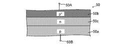 第2半導体層50bにおける第1導電形の不純物の濃度は、第1半導体層50aにおける第1導電形の不純物の濃度よりも高い。例えば、第2半導体層50bは、p+領域であり、第1半導体層50aは、例えば、p領域である。この場合、第3半導体層50cは、n領域である。実施形態において、第2半導体層50bがn+領域であり、第1半導体層50aがn領域で、第3半導体層50cがp領域でも良い。The concentration of the first conductivity type impurity in the
