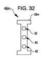 作動アセンブリ46は、駆動ロッド52とビーム部材28との間で引張荷重を伝達するための細長い板金バンドの積み重ねと、駆動ロッド52とビーム部材28との間で圧縮荷重を伝達するための矩形ワッシャの積み重ねとを含むことができる。例えば、図30は、駆動ロッド52とビーム部材28との間に取り付けられそれらの間に延在する板金ストリップ76の積み重ねを含む作動アセンブリ46kの等角図を示す。作動アセンブリ46kでは、板金ストリップ76は、ビーム部材28の近位後退中に駆動ロッド52からビーム部材28へ引張荷重を伝達する。作動アセンブリ46kはさらに、ビーム部材28の遠位前進中に駆動ロッド52からビーム部材28へ圧縮荷重を伝達する矩形ワッシャ82の積み重ねを含む。作動アセンブリ46kはさらに、矩形ワッシャ82を収容する管腔を有する内側シース84と、内側シース84を収容する管腔を有する外側シース86とを含む。図示された実施形態では、外側シース86は、手首部24を介した器具シャフト14に対するエンドエフェクタ16の再配向に応答して、板金ストリップ76の平面を横切って曲がるように外側シース86の可撓性を高めるために、手首部アセンブリ24の近くに一連の凹部88を有する。