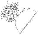 第二コネクタ20は、各フック部材34が、近位および遠位端38、40を有するフレキシブルアーム36を含んだ、複数のフック部材34を含む。各アーム36の遠位端40は、図17に示されるような、薬剤を含有する医療用バイアルであり得る、第二の容器26の対応するフランジ44と係合するように構成されたフック突起42を有する。可撓性アーム36は、第二の容器26と係合する際に、半径方向外側に移動し、続いて第二の容器26に、バイアルアクセス器具10を固定するために元の位置に戻るように構成される。第二コネクタ20として使用され得るコネクタの一つのタイプは、参照により本明細書に組み込まれる、特許文献2に開示されている。図7に示されるように、第二コネクタ20は、バイアルアクセス器具10の使用前に、保護キャップ46によって覆われ得る。特に、保護キャップ46は、フック部材34の外部にスナップ嵌めされ、使用者に、スパイク部材14からの保護を提供し、使用前に、ごみがスパイク部材14に入るのを防止する。他の適切な材料が利用され得るけれども、キャップ46は、ポリエチレンなどの高分子材料から作製され得る。  The