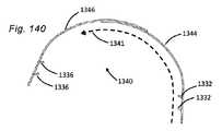 17.弁輪再成形デバイス。他の側面では、本発明は、血管に隣接する組織を再成形するために血管内に展開されるように適合される組織成形デバイス(経皮的僧帽弁輪形成デバイス等)を提供する。本デバイスは、血管壁に係合するためにカテーテルによって展開されるように適合される、第1の摩擦部材(または遠位アンカまたは返し)と、第2の摩擦部材(または近位アンカまたは返し)とを備え、本デバイスは、2つの摩擦部材に係合し、第1の摩擦部材と第2の摩擦部材との間に配置され、それらを動作可能に接続する支持構造を提供する一方、十分な表面積を用いて弁輪を緊締し、緊締力を分散させ、チーズカッタ効果を軽減する能力を提供するように適合される板ばね特徴を含む。いくつかの実施形態では、板ばね支持構造は、加えて、弁輪に対して半径方向圧縮力を付与するように構成されることができる。いくつかの実施形態では、摩擦部材は、組織と非外傷的に係合するように構成される返しである。いくつかの実施形態では、組織との係合をさらに強化するために、第1および第2の摩擦部材の間に中間摩擦部材が存在してもよい。いくつかの実施形態では、摩擦部材は、冠静脈洞に係合するように適合される。いくつかの実施形態では、摩擦部材は、冠静脈洞に係合するように適合され、デバイス全体(板ばねを含む)は、弁輪を再成形し、僧帽弁逆流を軽減するように構成される。 17. Annulus reshaping device. In another aspect, the invention provides a tissue shaping device (such as a percutaneous mitral annuloplasty device) adapted to be deployed within a blood vessel to reshape tissue adjacent to the blood vessel. The device comprises a first friction member (or distal anchor or barb) and a second friction member (or proximal anchor or barb) adapted to be deployed by the catheter to engage the vessel wall. ), wherein the device engages the two friction members and provides a support structure disposed between and operatively connecting the first friction member and the second friction member, while Includes leaf spring features adapted to provide the ability to clamp the valve annulus with sufficient surface area to distribute the clamping force and mitigate the cheese-cutter effect. In some embodiments, the leaf spring support structure can additionally be configured to impart a radial compressive force on the valve annulus. In some embodiments, the friction member is a barb configured to atraumatically engage tissue. In some embodiments, there may be an intermediate friction member between the first and second friction members to further enhance tissue engagement. In some embodiments, the friction member is adapted to engage the coronary sinus. In some embodiments, the friction member is adapted to engage the coronary sinus and the entire device (including leaf springs) is configured to reshape the valve annulus and reduce mitral regurgitation. be done.
