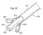 14.板ばね。いくつかの好ましい実施形態では、本発明のデバイス、システム、および方法は、処置部位における組織の固定のために適合される。例示的組織固定用途は、心臓弁修復、中隔欠損修復、血管結紮および咬持、裂傷修復、および創傷閉鎖を含むが、本発明は、多種多様な組織接近および修復手技における使用を見出し得る。特に好ましい実施形態では、本発明のデバイス、システム、および方法は、逆流のための治療として、心臓弁、特に、僧帽弁の修復のために適合される。本発明は、逆流を低減させるために、「切端」または「ボウタイ」技法を使用して2つ以上の弁尖が接合されることを可能にするが、従来のアプローチのように胸部および心臓壁を通した観血術を要求しない。加えて、尖の位置は、石灰化、脱出、または動揺等の疾患のタイプおよび程度に応じて、罹患した僧帽弁において変動し得る。これらのタイプの疾患は、一方の尖が他方よりも可動性(例えば、捕捉することがより困難)であり、したがって、他方の尖と同一の把持において対称的に把持することがより困難であることをもたらし得る。本発明の特徴は、固定デバイスが、予測不可能な標的組織幾何学形状の課題を満たすように適合され、かついったんこれが捕捉されると、組織に対してよりロバストな把持を提供することを可能にする。本発明は、インプラントが埋込後に回収されることを可能にする特徴を備える。加えて、本発明は、随意に、公知かつ典型的な可視化技法を組み込み、デバイス留置手技が全身麻酔の使用を伴わずに実施されることを可能にする。 14. Leaf spring. In some preferred embodiments, the devices, systems and methods of the present invention are adapted for fixation of tissue at a treatment site. Exemplary tissue fixation applications include heart valve repair, septal defect repair, vessel ligation and occlusion, laceration repair, and wound closure, but the present invention may find use in a wide variety of tissue access and repair procedures. In particularly preferred embodiments, the devices, systems and methods of the present invention are adapted for repair of heart valves, particularly mitral valves, as a treatment for regurgitation. The present invention allows two or more leaflets to be brought together using the "incisal" or "bowtie" technique to reduce regurgitation, but the thoracic and heart wall as in conventional approaches. Does not require invasive surgery through the Additionally, leaflet position may vary in a diseased mitral valve depending on the type and degree of disease such as calcification, prolapse, or perturbation. In these types of disorders, one cusp is more mobile (e.g., more difficult to grasp) than the other and thus more difficult to grasp symmetrically in the same grasp as the other cusp. can bring about A feature of the present invention is that the fixation device can be adapted to meet the challenges of unpredictable target tissue geometries and, once captured, provide a more robust grip on the tissue. to The present invention includes features that allow the implant to be retrieved after implantation. Additionally, the present invention optionally incorporates known and typical visualization techniques to allow device placement procedures to be performed without the use of general anesthesia.