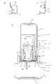 そして空気用スリットが、第二周壁によって第一容器が保持された際に液剤用スリットよりも高くなる位置に設けられる場合は、高い位置にある空気用スリットからは、液剤よりも軽い空気が優先的に流れ、低い位置の液剤用スリットからは液剤が優先的に流れることになる。すなわち、空気と液剤との置換時において、空気が優先的に流れる経路と液剤が優先的に流れる経路が分かれるため、空気と液剤との置換をスムーズに進めることができる。 When the air slit is provided at a position higher than the liquid agent slit when the first container is held by the second peripheral wall, air that is lighter than the liquid agent has priority from the air slit at the higher position. The liquid agent preferentially flows from the lower liquid agent slits. That is, when the liquid agent is replaced with the air, the air preferentially flows and the liquid agent preferentially flows separately, so that the replacement of the air with the liquid agent can proceed smoothly.