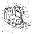 フレーム下部41には、その下側に、受光素子31が組み付けられた受光基板51と、スキャン部20が組み付けられたモータ基板52とが取り付けられる。このため、フレーム下部41には、受光折返ミラー33から受光素子31に至る光の経路となる部位と、スキャン部20のモータ23が配置される部位とに、孔が設けられている。The