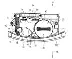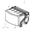 以下、略長方形に形成されている上記の開口部の長手方向に沿った方向をX軸方向、開口部の短手方向に沿った方向をY軸方向、X軸方向およびY軸方向に直交する方向をZ軸方向とする。なお、X軸方向における左右およびY軸方向における上下は、筐体100の開口部側から見て定義する。また、Z軸方向における前後は、筐体100の開口部側を前、奥行き側を後と定義する。  Hereinafter, the direction along the longitudinal direction of the substantially rectangular opening is the X-axis direction, the direction along the width direction of the opening is the Y-axis direction, and the directions are perpendicular to the X-axis direction and the Y-axis direction. Let the direction be the Z-axis direction. Note that left and right in the X-axis direction and up and down in the Y-axis direction are defined as viewed from the opening side of the