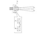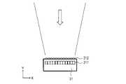 ここで、光源11の発光領域A1,A2に基づく光ビームをB11,B12とし、光源12の発光領域A1,A2に基づく光ビームをB21,B22とする。図12に示すように、投光偏向部20aの反射点Pから放射される光ビームにおいて、Y軸に沿った上側から下側に向かって順に、光ビームB11、光ビームB21、光ビームB12および光ビームB22が配置される。さらに、各光ビームB11,B21,B12,B22の間に隙間ができないように、光源11,12の位置が微調整される。また、図13に示すように、受光素子31のAPDアレイ311上において、各光ビームB11,B21,B12,B22が照射された被検物からの反射光が、各APDのZ軸方向の中心に照射され、それぞれが異なる3素子ずつに照射されるように微調整される。  Here, the light beams based on the light emitting areas A1 and A2 of the